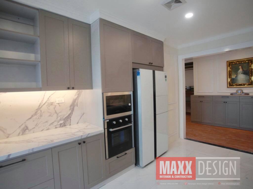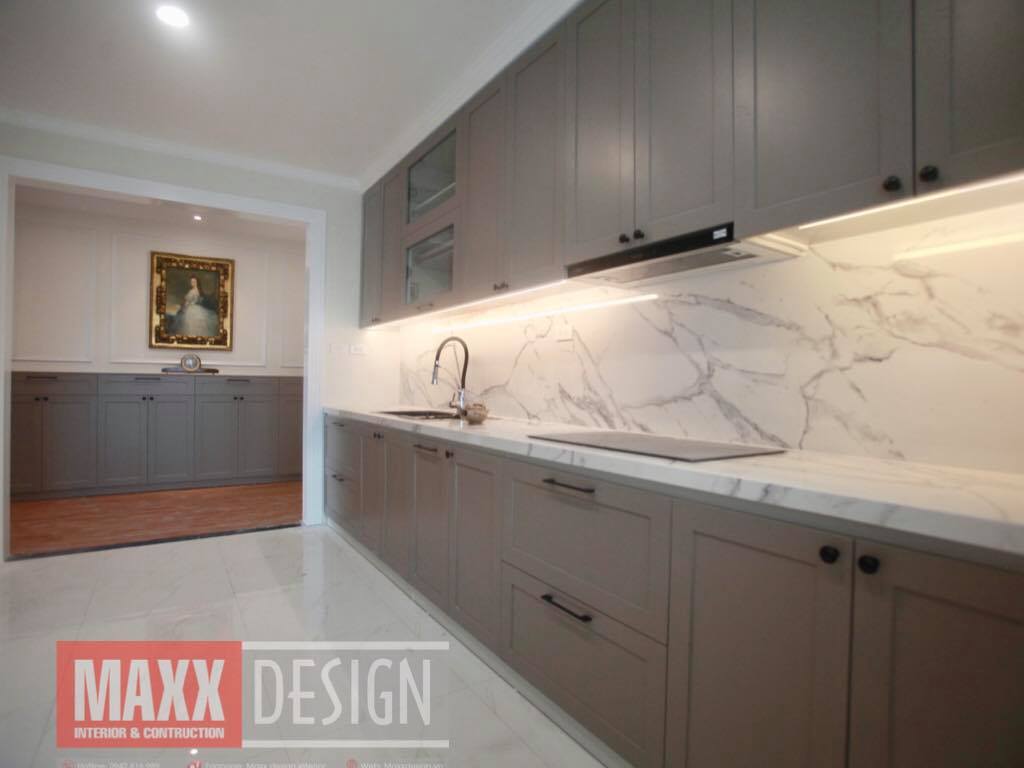 Khu vực nấu nướng cũng được thiết kế đơn giản. Hệ thống tủ bếp sát trần giúp gia chủ có thêm không gian lưu trữ đồ. Ngoài ra căn phòng bếp còn được thiết kế thêm cửa sổ giúp căn bếp luôn thoáng mát và sạch sẽ.