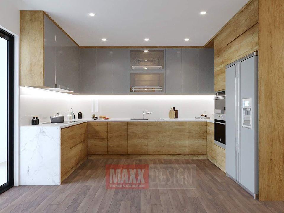 Tủ bếp gỗ công nghiệp chữ U tối ưu diện tích không gian và cũng là cách để thoả mãn sở thích của bà nội trợ trong việc nấu nướng,  một góc nhỏ mà chị chủ nhà đã dành rất nhiều tình yêu thương đặt vào!