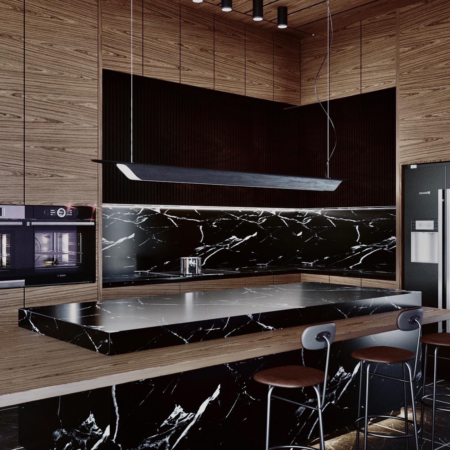 Hướng đến sự đơn giản không sử dụng nhiều hoạ tiết cầu kì mà vẫn đảm bảo được sự tinh tế cho ngôi nhà, nhóm thiết kế của Maxx Design đã ứng dụng vật liệu kết hợp giữa gỗ và tranh đá tự nhiên cho ra đời một công trình hiện đại và sang trọng.